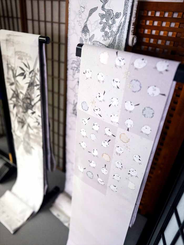 今週はイベントがなく、小紋やお召、紬などの正絹や厚手の木綿の着物など、
