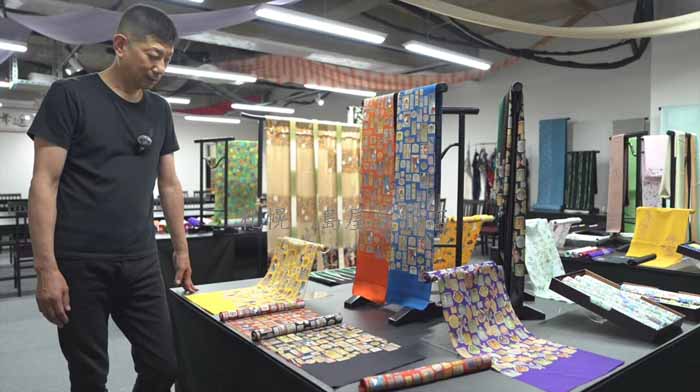 着物や帯、帯揚げなど、様々な染め物をされている吉兵衛さん。