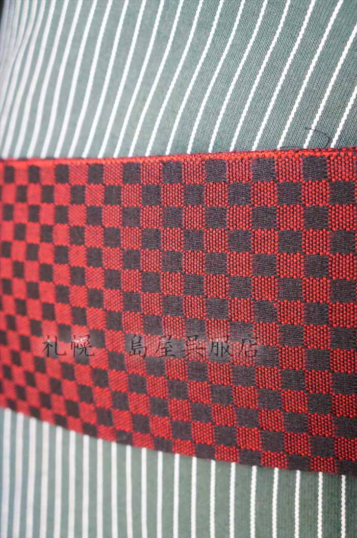 帯はシックな赤と黒の、細かい市松模様。