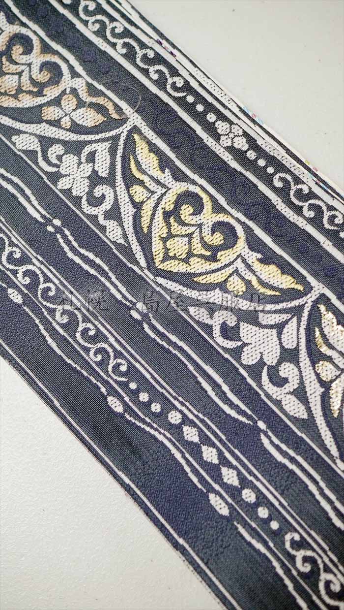片面は墨黒の地に、金糸を交えた豪奢な唐草模様で