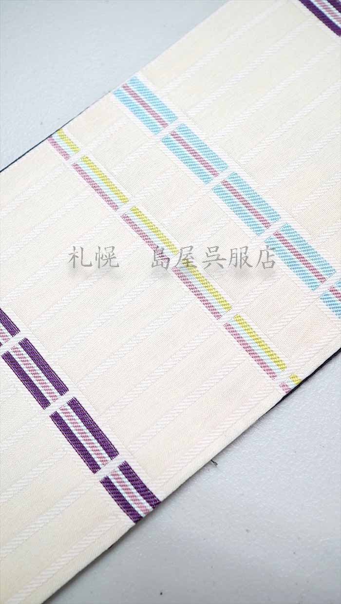もう片面は、クリームベージュ色の地に5色の縞が並ぶ