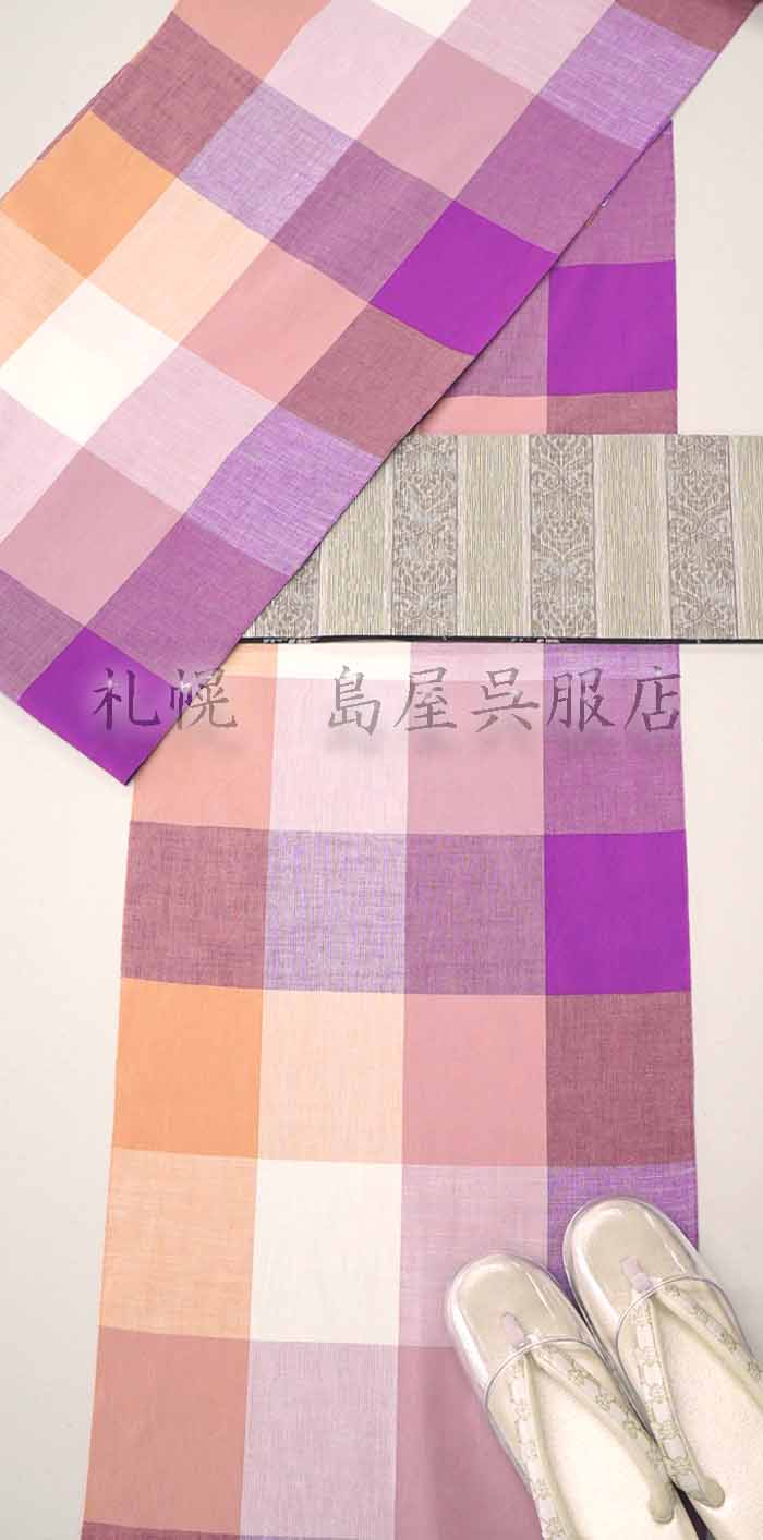 片貝木綿:カラフルポップ格子・ピンク [41/542]