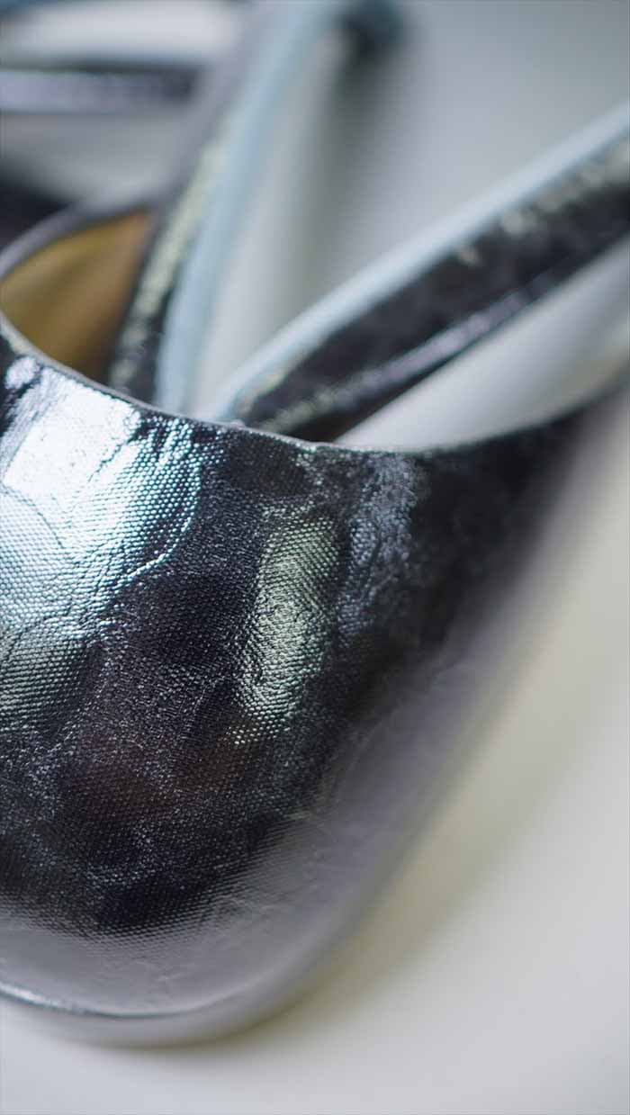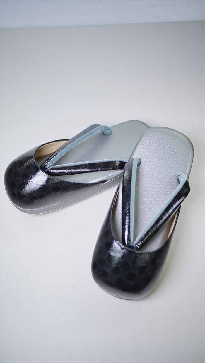 つま皮と鼻緒部分はグレージュ濃淡のムラ染め。