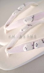 グレイッシュホワイトの天に、スモーキーピンクのレース鼻緒が