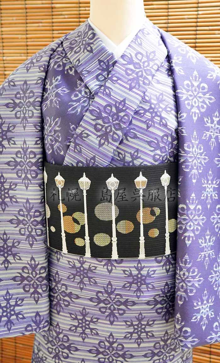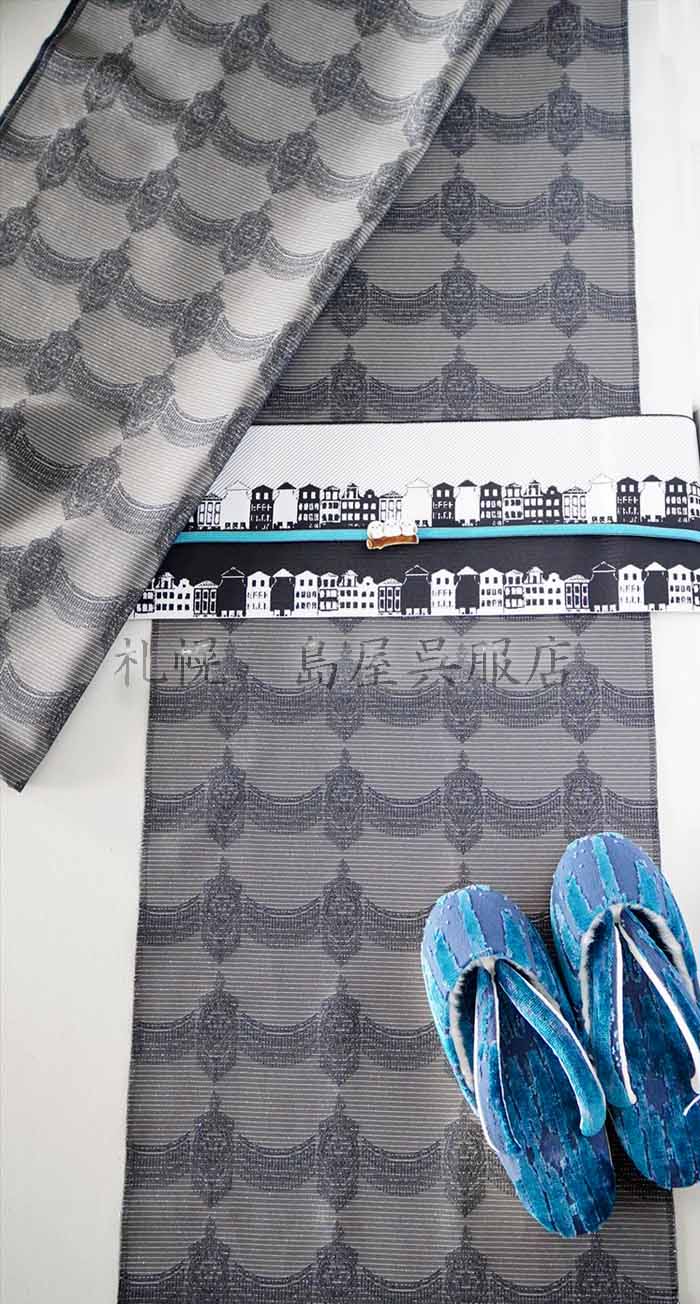 半幅帯:リバーシブル 北海道柄(小樽)ブラック系 [53/1110]