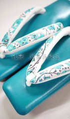 会津桐を台にして、天や鼻緒を様々な素材で彩り、