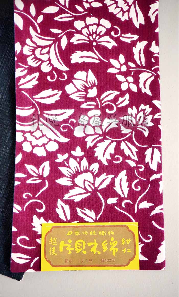 半幅帯:リバーシブル 更紗/無地 手染(ボルドー色) [53/1199]