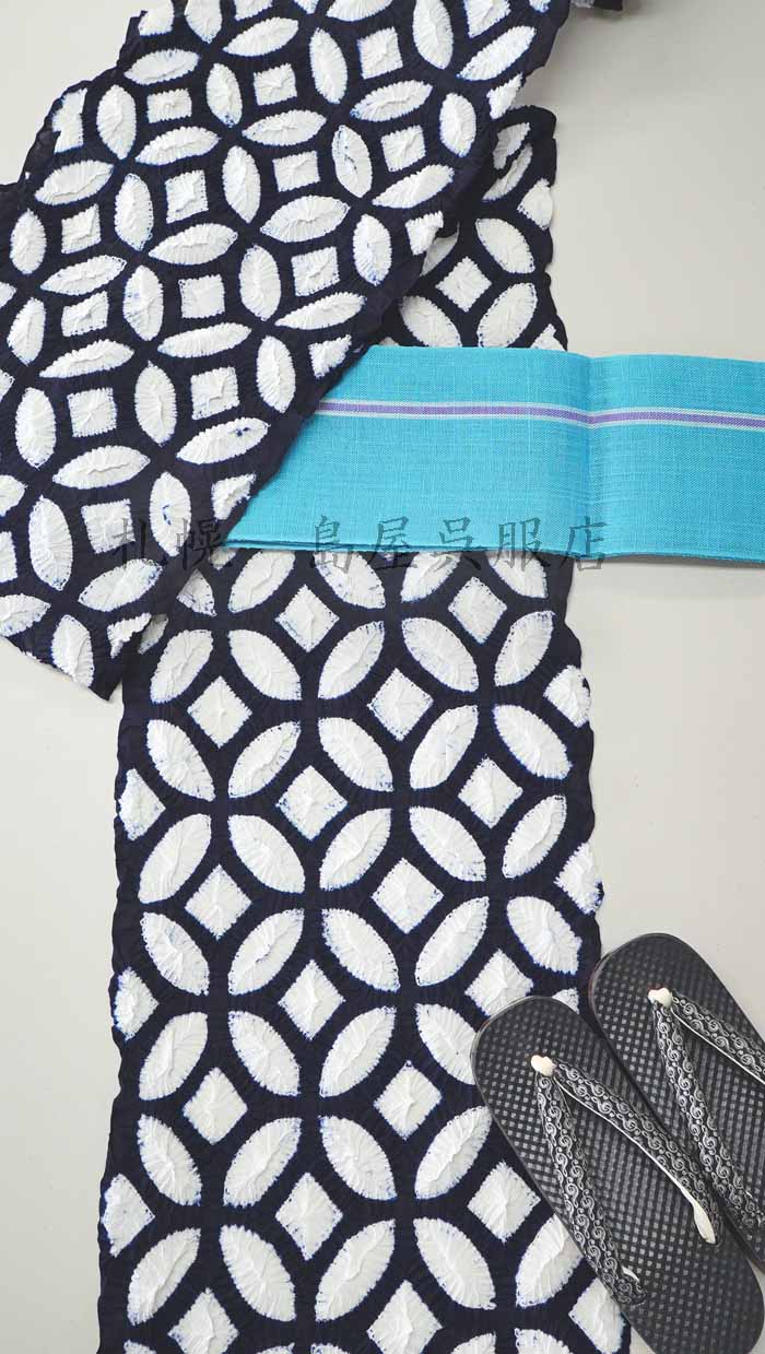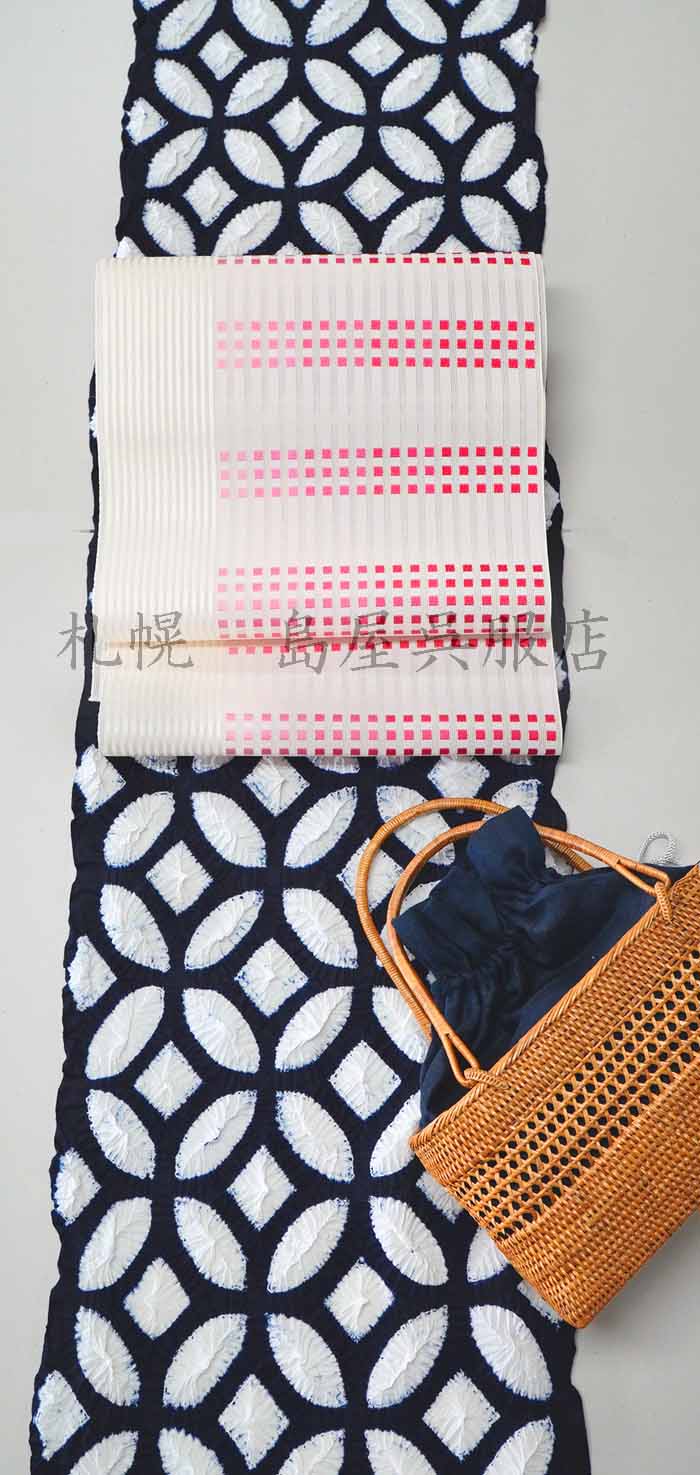 黒に近いほどの濃紺に、くっきりとした白が冴える一反です。