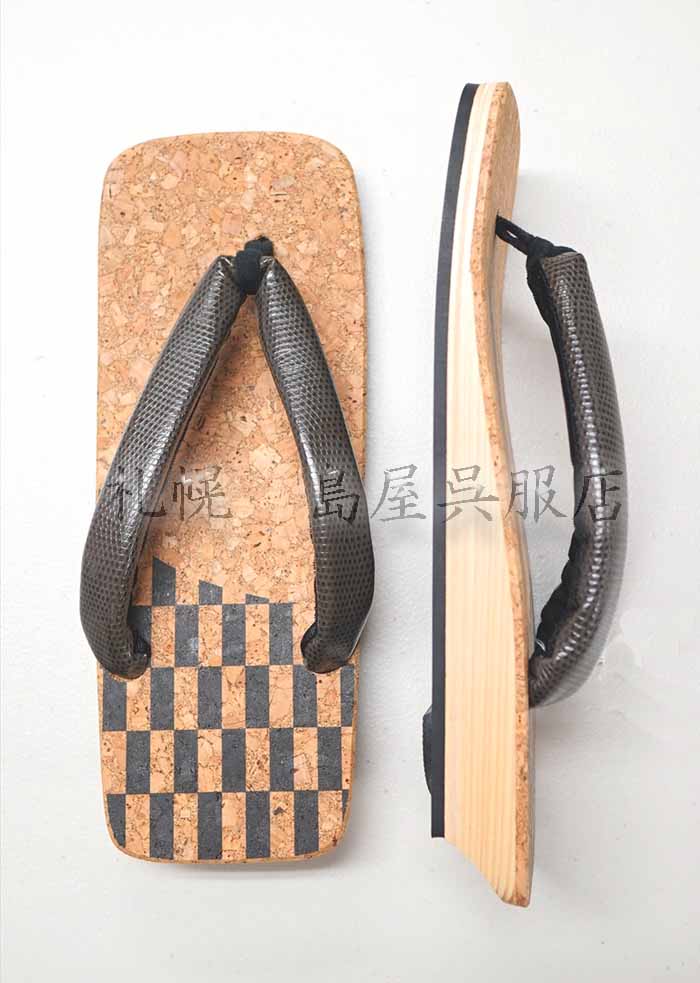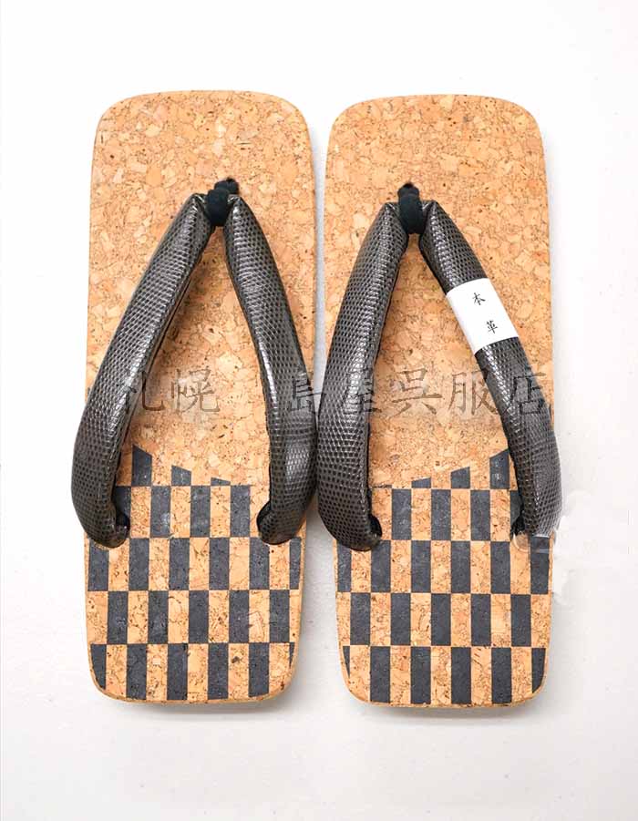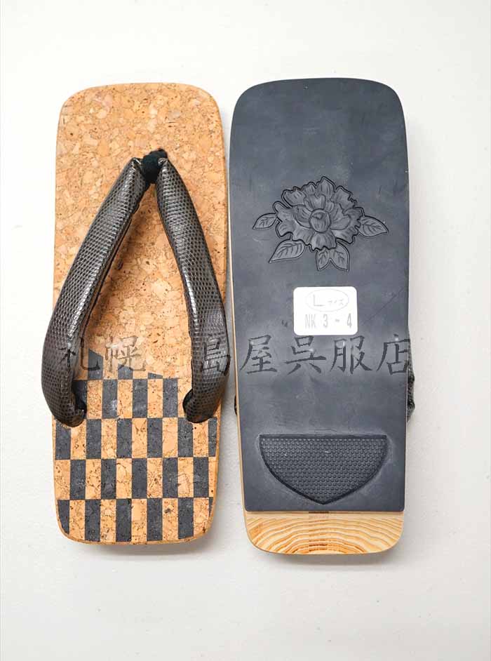 コルク張りで、かかと近くに変わり市松柄が描かれ、