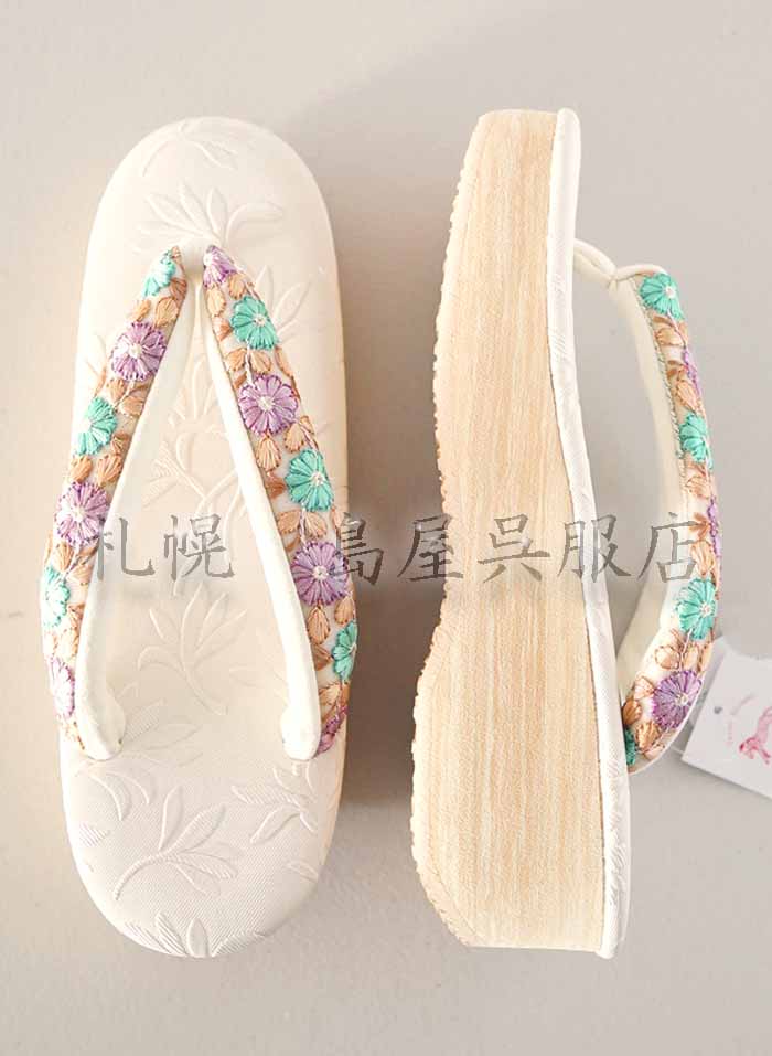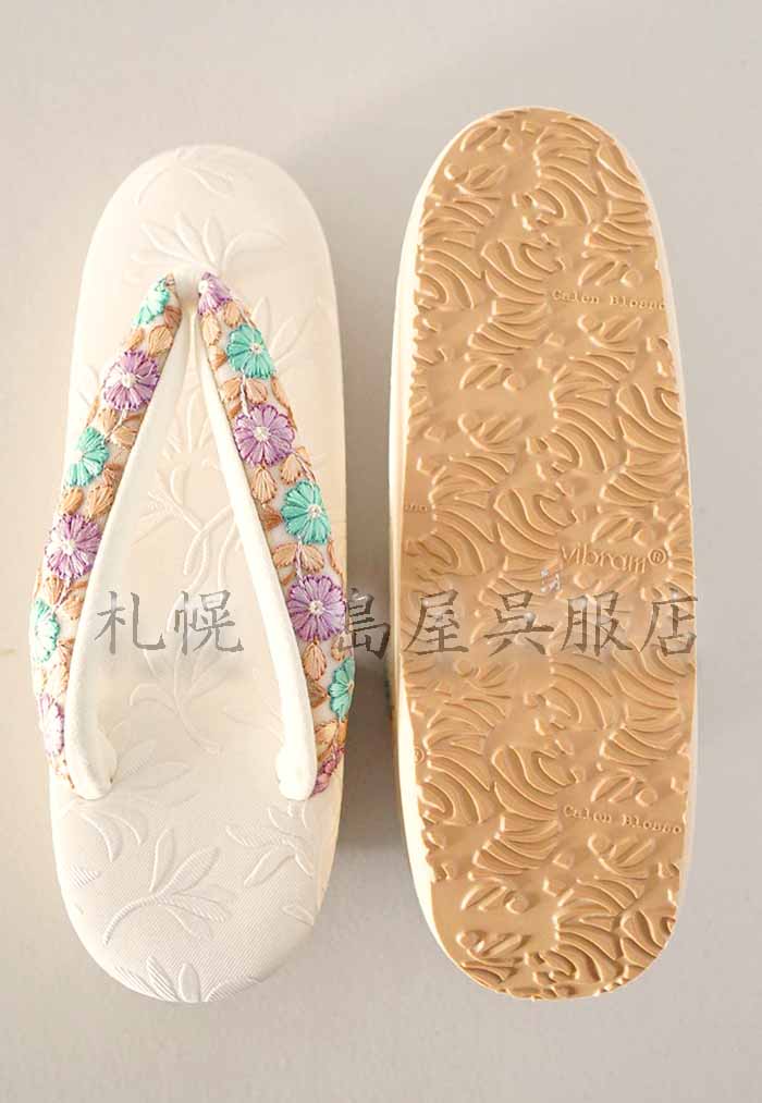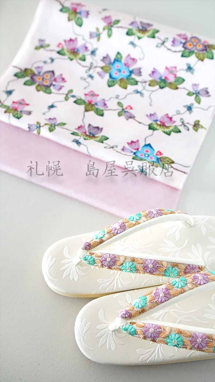 鼻緒は花柄の刺しゅうが咲き誇る、華やかで可愛らしい雰囲気です。