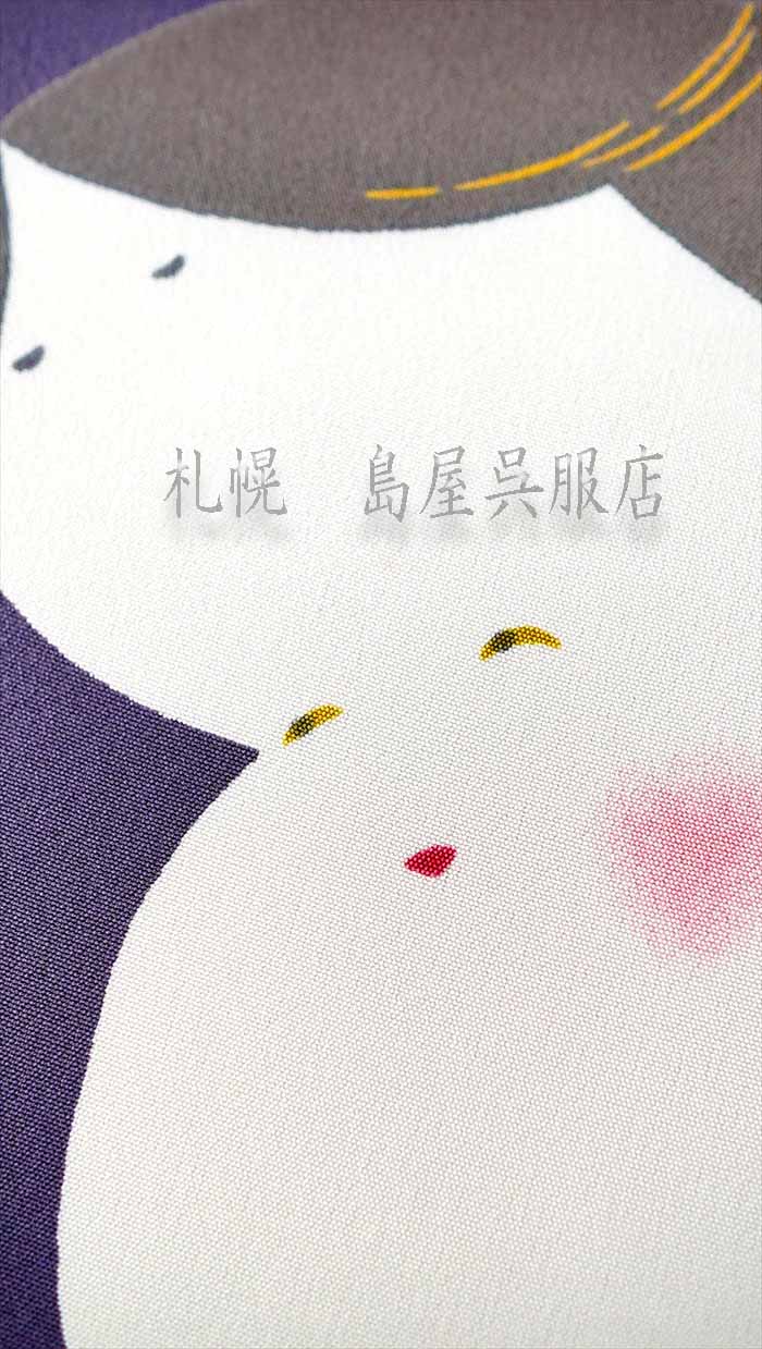 愛嬌のある可愛いお顔が飛び柄に染められ、振りや袖口からも