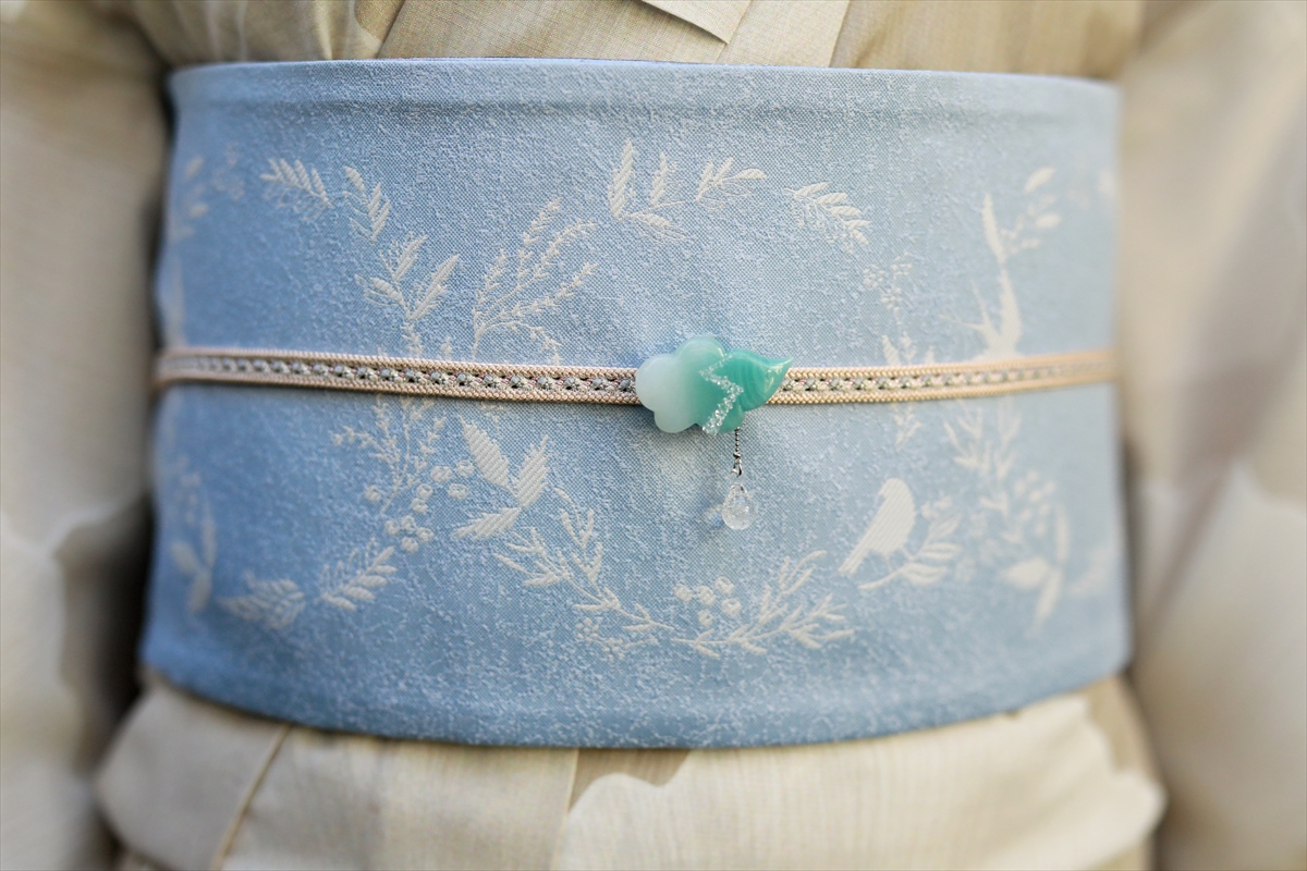 帯留が映える優しい色合いは、季節を問わず