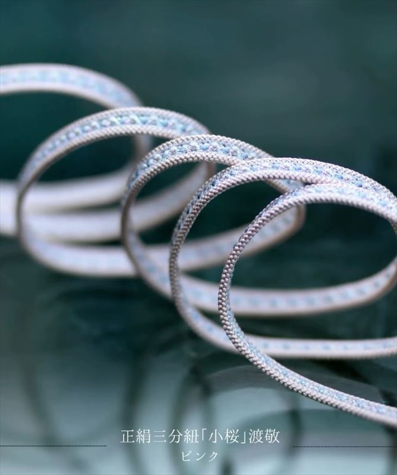 優しいピンクベージュの三分紐の真ん中に、