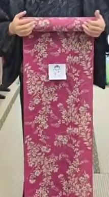 色はべんがら染めのマゼンタピンクが地色のベージュに