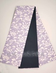 半幅帯:リバーシブル 菊唐草/無地 手染(藤色) [53/690]