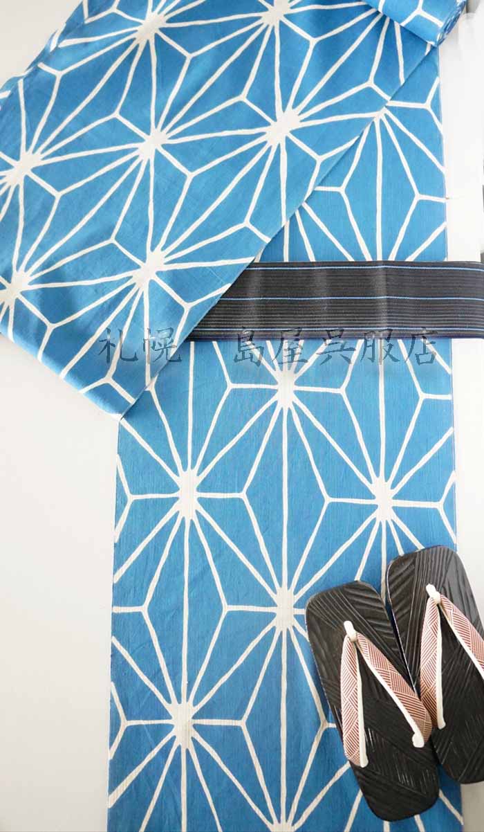 角帯:リバーシブル麻絹・ブルー系/黒 [57/1065]