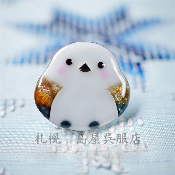 帯留:島屋オリジナル 愛くるしい目が合う!シャイなシマエナガ・ほっぺ(七宝焼) [56/00]
