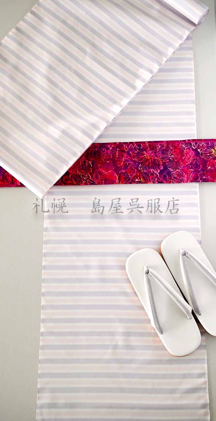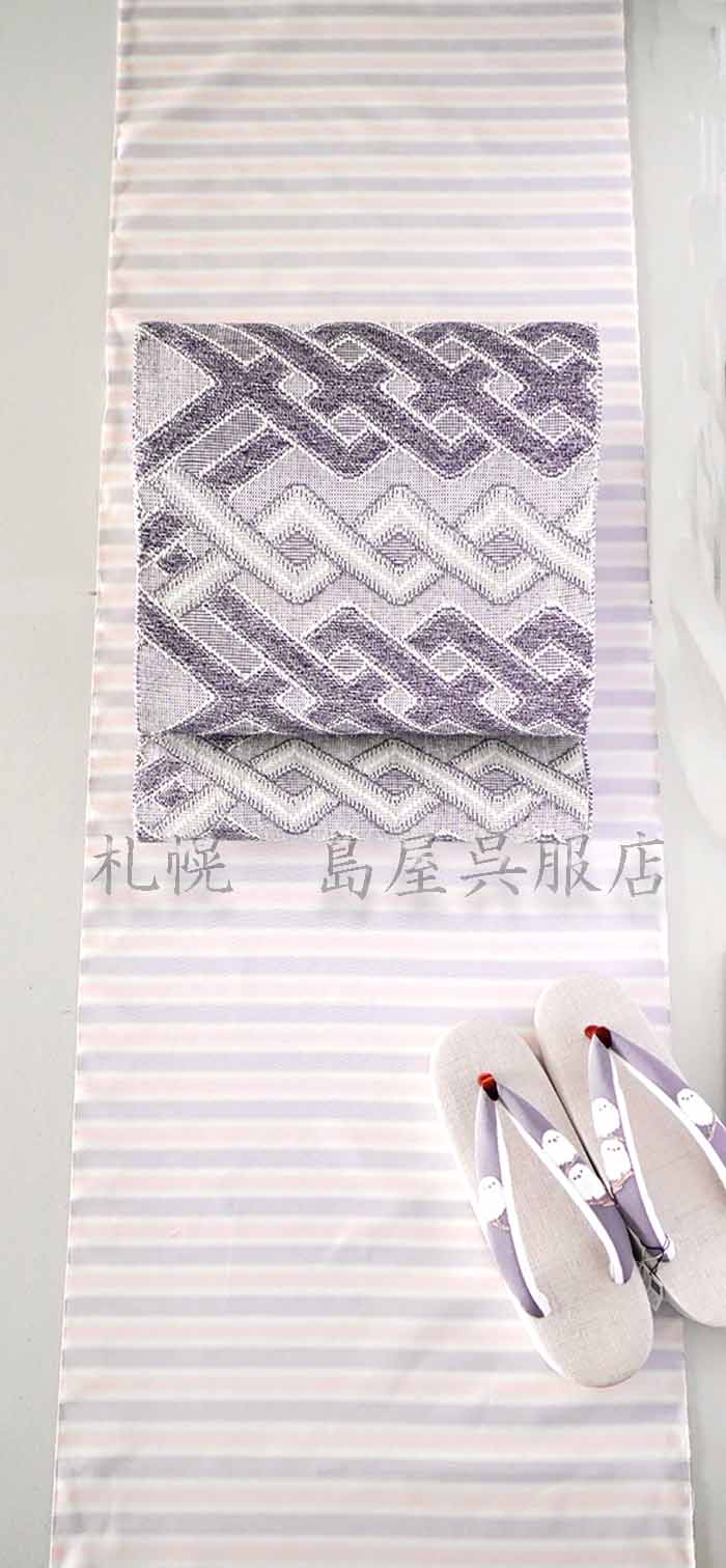 柔らかなピンクとグレイッシュパープルのボーダー。
