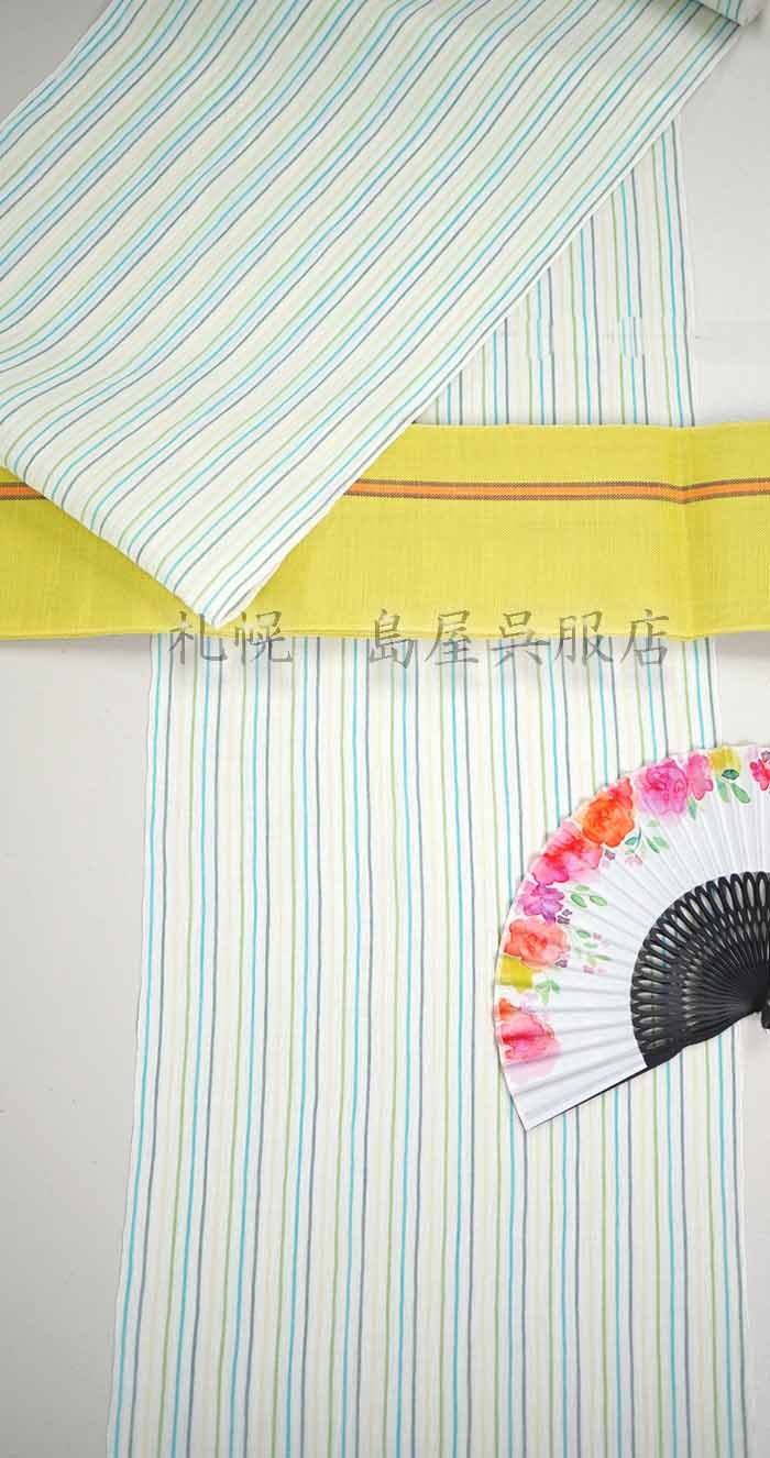 白地の中に4色の縞が入った、すっきり爽やかな一反です。